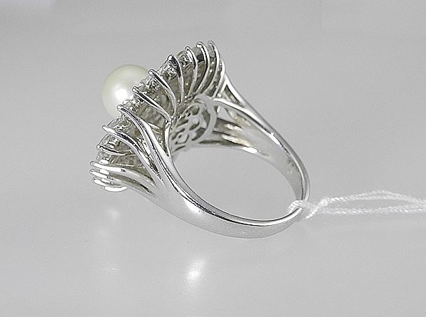 Sterling (marked 925) White Topaz & Pearl Ring, Size 9 1/4, 8.5g.
