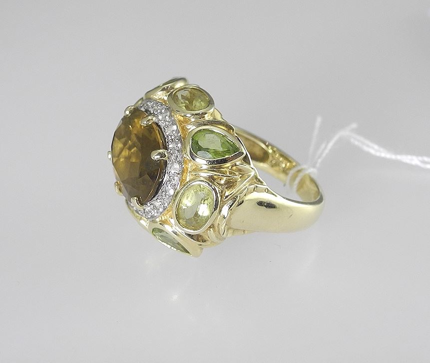 LOT 59 14K (marked) Gold Topaz or Quartz Diamond & Semi-Precious Stone Ring, Size 8, 10.2g. Estimate: $600 - $700 Sold For: $600 Auction Date: Tuesday, August 12 2025 at 4:00 PM