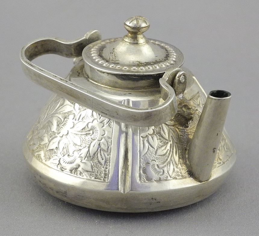 LOT 272 Dutch 2nd Standard Silver (.833) Miniature Tea Pot, 1 7/8"L, 29g. Estimate: $60 - $70 Sold For: $90 Auction Date: Tuesday, August 12 2025 at 4:00 PM