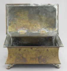 Late 18th/Early 19th C. Hunt Motif Copper Casket, 3 3/4 x 8 1/8 x 4 7/8 ".
