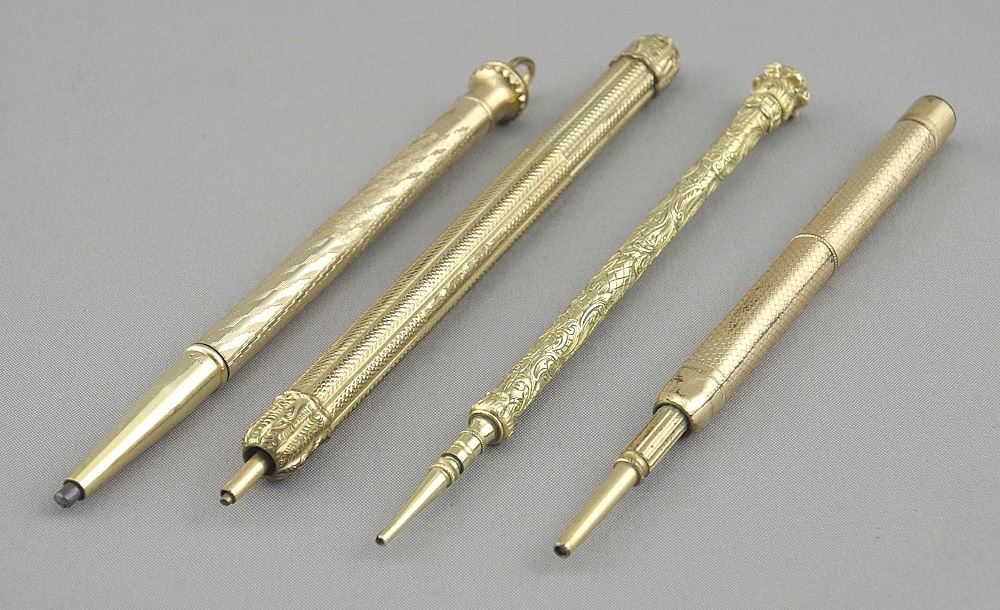 LOT 137 Collection of Four Gold Plated Propelling Pencils, 4 1/4". Estimate: $80 - $120 Sold For: $110 Auction Date: Tuesday, August 12 2025 at 4:00 PM