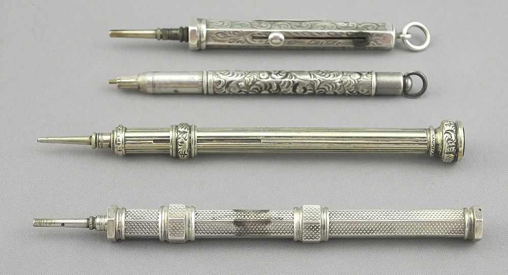 Collection of 3 Plated & 1 Sterling Propelling Pencils Including Mordan & Co., 4 1/4".