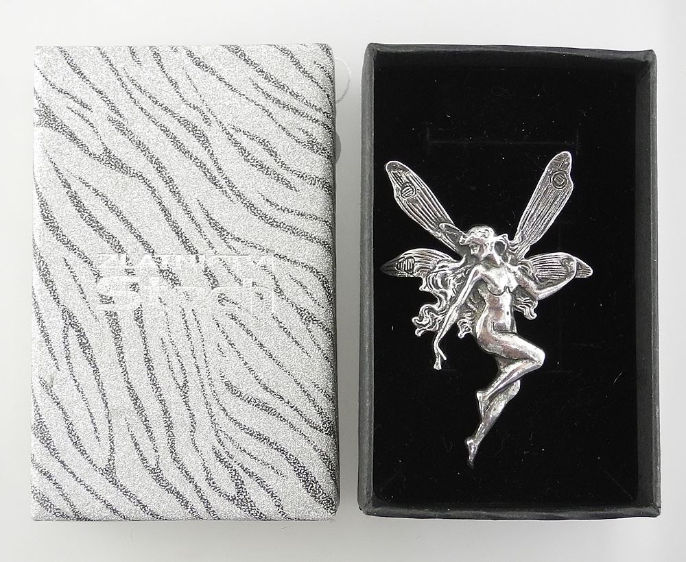 LOT 124 Sterling Silver (marked 925) Fairy Brooch, 2"h, 7.2g with Box. Estimate: $60 - $100 Sold For: $130 Auction Date: Tuesday, August 12 2025 at 4:00 PM