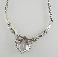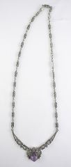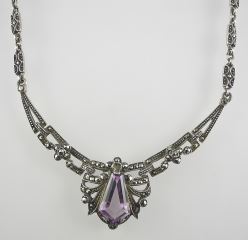 Art Deco Sterling Silver (marked 925), Marcasite & Amethyst Paste Necklace, 19g.