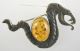 Sterling Silver (925) & Amber Serpent Pendant Brooch