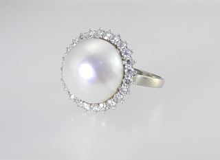 LOT 23 14K Mabe Pearl & Diamond Dinner Ring, Size 9 1/2, 10.74g. Estimate: $800 - $1,000 Auction Date: Tuesday, December 02 2025 at 4:00 PM