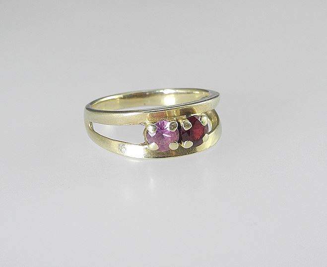 10K (tested) Gold & Synthetic Ruby & Alexandrite Ring, Size 7 1/2, 3.49g.