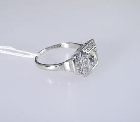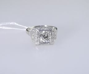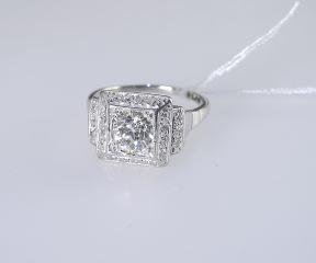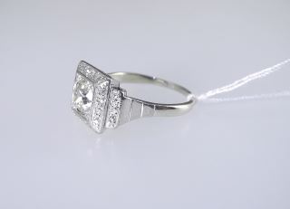 Art Deco Platinum (marked) & 1.2ct European Cut Diamond Ring, Size 8, 4.4g w/box.