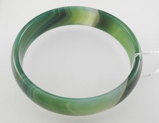 LOT 141 Green Agate Bangle, Internal Diameter 2 1/4". Estimate: $60 - $100 Sold For: $30 Auction Date: Tuesday, December 02 2025 at 4:00 PM