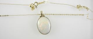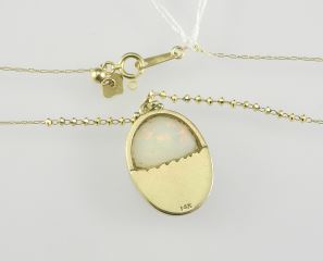 LOT 41 14K Gold & Opal Pendant (7/8"), 2.7g on a K18 Chain, 1.5g. Estimate: $380 - $440 Auction Date: Tuesday, December 02 2025 at 4:00 PM
