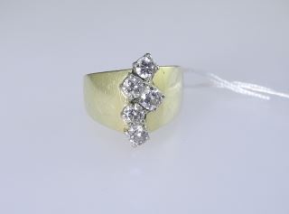 14K (marked) Gold & Five Diamond Ring, Size 6 1/2, 8.1g.
