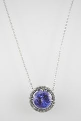 Approx. 1.5ct Tanzanite Diamond Halo & 10K Gold Pendant on 10K Chain, 17" 2.5g.