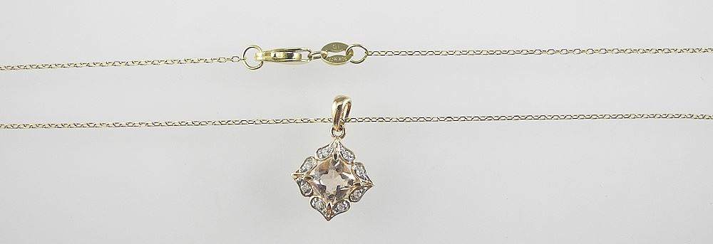 LOT 168 Morganite Pendant (14K/.78g) & Earrings (10K/2.0g) on 10K Chain, 18"L, 0.8g. Estimate: $300 - $400 Auction Date: Tuesday, December 02 2025 at 4:00 PM