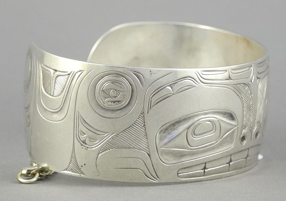 LOT 348 Northwest Coast Silver Cuff Monogrammed DW, 2 1/2"w, 37g. Estimate: $150 - $300 Auction Date: Tuesday, December 02 2025 at 4:00 PM