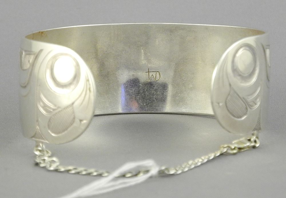 Northwest Coast Silver Cuff Monogrammed DW, 2 1/2"w, 37g.