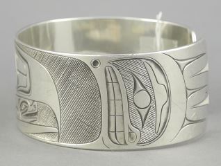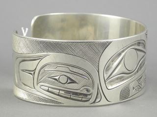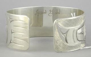 Northwest Coast Silver Cuff signed Landon Gunn, 2 3/4"w, 65.6g.