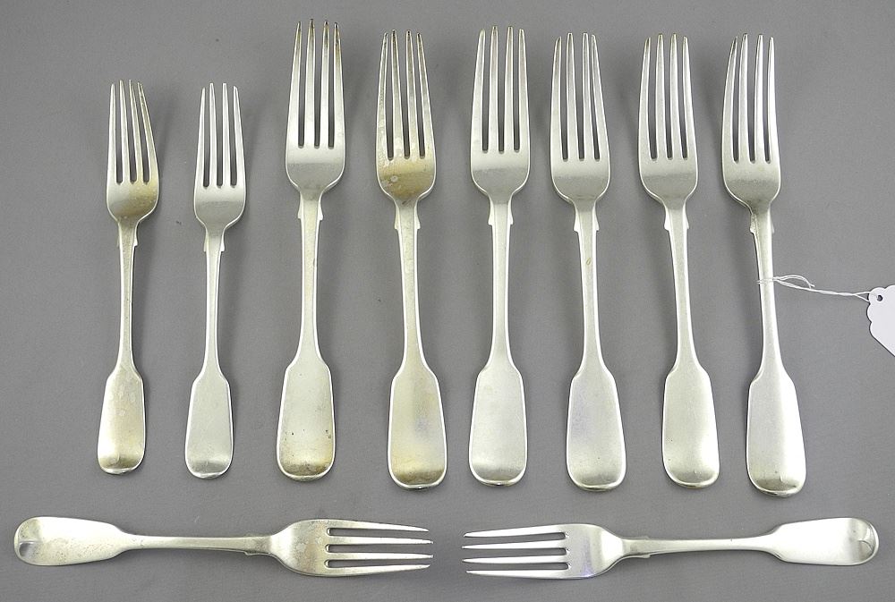 LOT 230 Collection of Hallmarked Silver Forks in Two Sizes, 596g. Estimate: $500 - $750 Sold For: $850 Auction Date: Tuesday, December 02 2025 at 4:00 PM