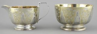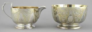 Pair of Hallmarked Silver Gilded Cream & Sugar, 397g.