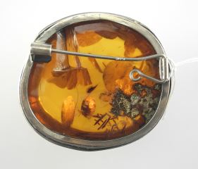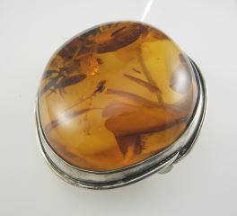 LOT 104 Modernist Silver (925) & Amber Brooch, 2 1/8"w, 57.9g. Estimate: $80 - $140 Sold For: $140 Auction Date: Tuesday, December 02 2025 at 4:00 PM