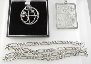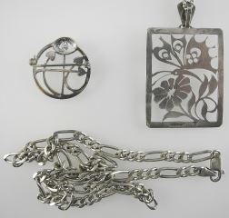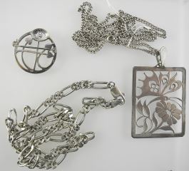 Collection of Sterling Silver (marked) Jewelry: CB Brooch w/box / Necklace / Pendant, 49.7g.