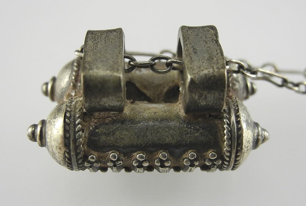 LOT 98 Sri Lankan Silver Alloy Scroll Amulet on Sterling Chain, 16"L, TW 7.2g. Estimate: $60 - $100 Auction Date: Tuesday, December 02 2025 at 4:00 PM