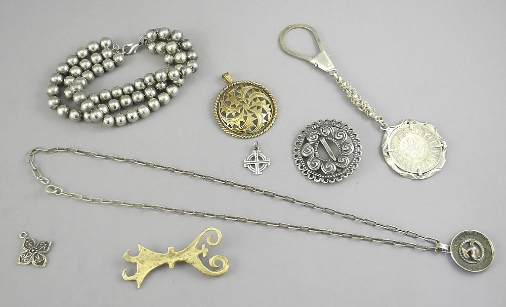 Collection of Silver Colored Metal/ Silver/Brass Jewelry Items.