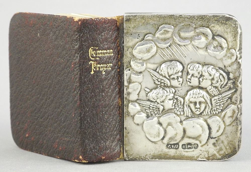 Hallmarked Silver "Cherub Choir" Book of Common Prayer, 2 1/8"h, 31g.