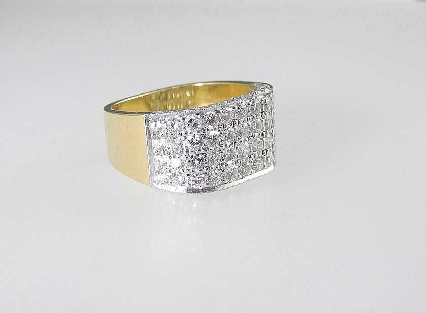 Unmarked Gold & Pave Diamond Soft Square Ring, Size 6 1/2, 9.2g.
