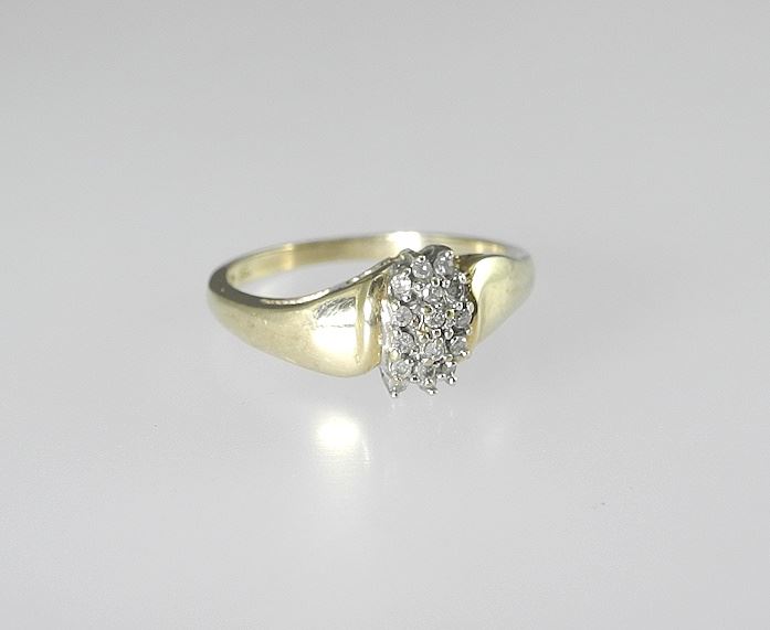 LOT 232 10K (marked) Gold Ring with Diamond Chips (size 6 3/4, 2.8g) with Musical Jewel Box (Bombay Estimate: $120 - $180 Sold For: $180 Auction Date: Tuesday, December 02 2025 at 4:00 PM