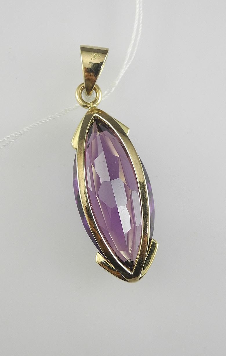 14K (marked 14K) Gold Marquise Cut Tanzanite/Alexandrite Brooch, 1 3/4" h, 10g.