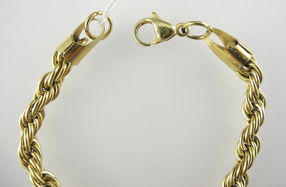 Unmarked Gold Tone Rope Twist Bracelet, 7 1/2"L, 14.6g.
