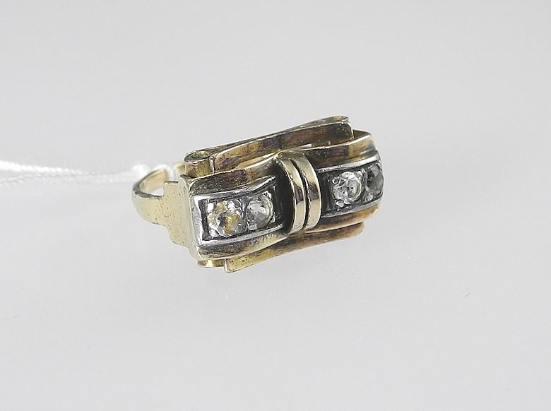 French Art Deco Gold Tone & Rock Crystal Ring with Original Box, Size 5, 4.5g.