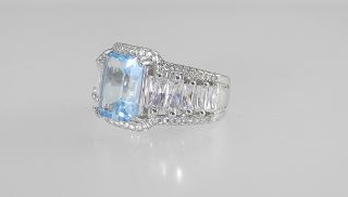 LOT 335 4ct Swiss Blue Topaz Ring, Size 6 Mounted in Sterling w/White Gold Overlay. Estimate: $50 - $100 Sold For: $90 Auction Date: Tuesday, December 02 2025 at 4:00 PM
