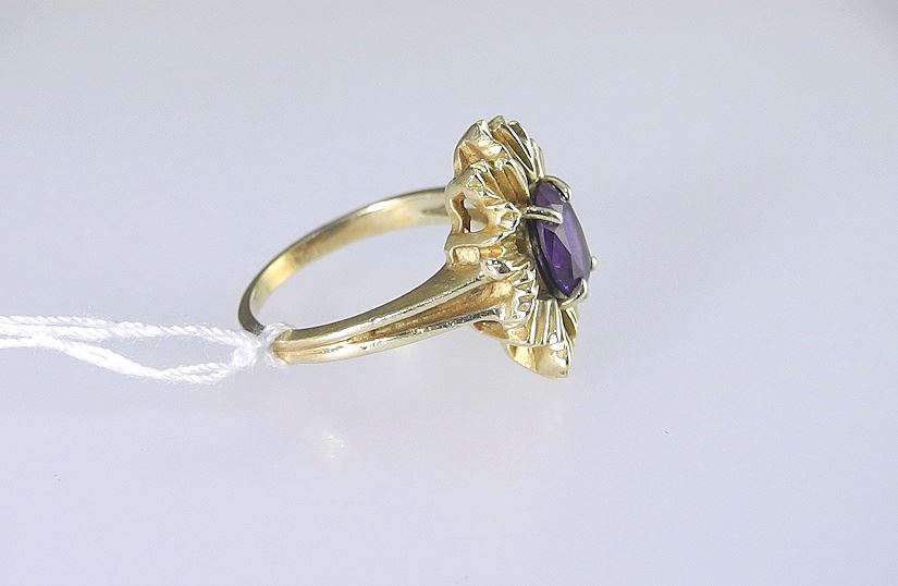 10K (marked) Gold & Amethyst Ring, Size 7, 5.1g.