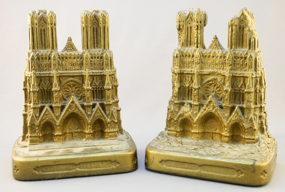 LOT 374 Pair of Armor Bronze "Rheims Cathedral" Bookends, 8" high. Estimate: $60 - $100 Sold For: $50 Auction Date: Tuesday, November 16 2021 at 6:00 PM