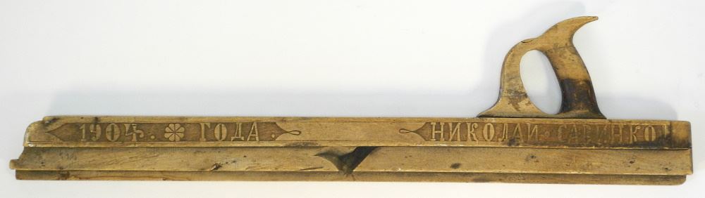 Russian Wood Plane, Lettered in Cyrillic & Dated 1904, 28 1/4" L.