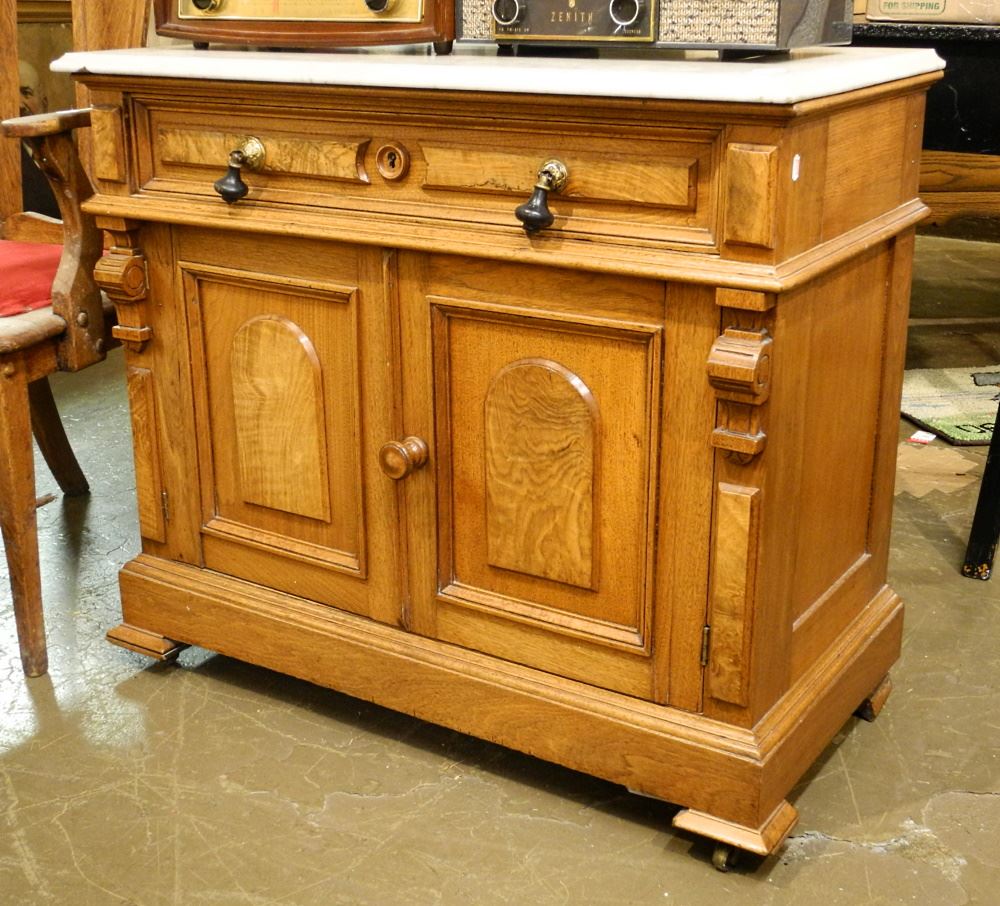 LOT 215 19th Century Marble Top Dresser, 34" wide. Estimate: $100 - $150 Auction Date: Tuesday, November 16 2021 at 6:00 PM