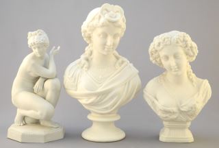 LOT 20 4 Parian Busts & 1 Parian Figure of a Woman, Largest 9 3/4" High, Condition Noted. Estimate: $60 - $100 Sold For: $50 Auction Date: Tuesday, March 08 2022 at 6:00 PM