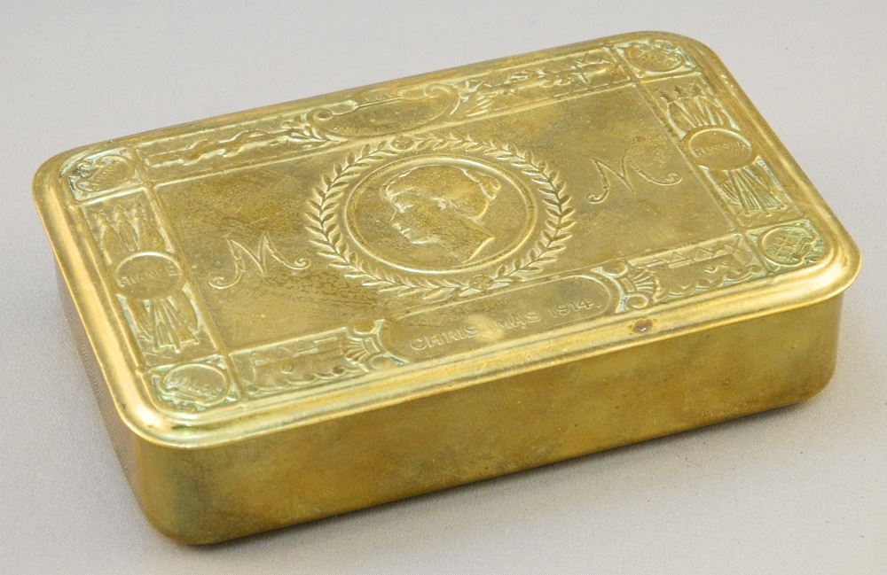 LOT 419 Princess Mary Christmas 1914 Brass Gift Box, 5 1/8" Wide. Estimate: $50 - $60 Sold For: $50 Auction Date: Tuesday, November 08 2022 at 6:00 PM