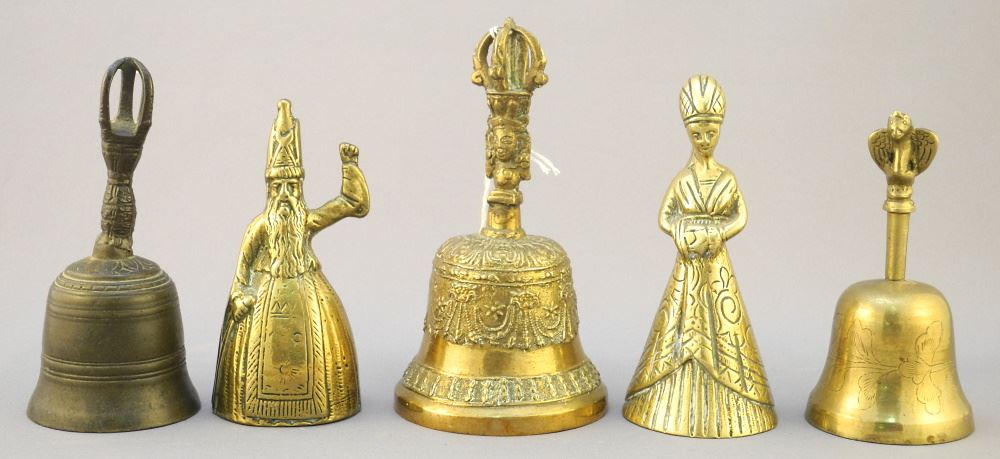 LOT 395 Collection of Brass Bells, largest 5 1/4" high. Estimate: $60 - $120 Sold For: $60 Auction Date: Tuesday, November 08 2022 at 6:00 PM