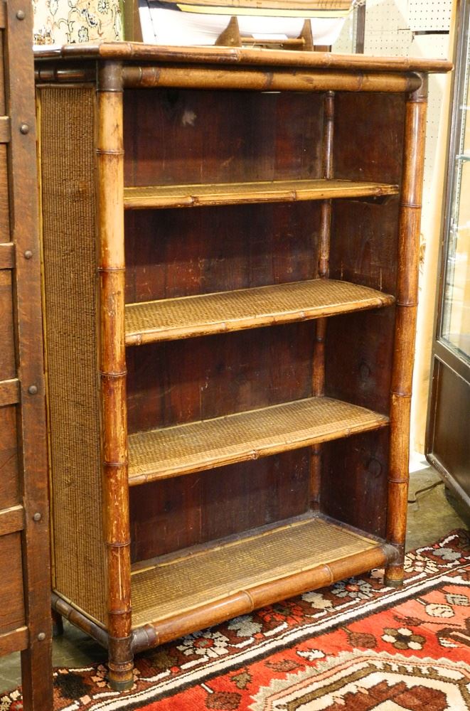 LOT 48 Fumed Rattan Book Shelf, 48 1/4" High. Estimate: $60 - $100 Sold For: $120 Auction Date: Tuesday, November 08 2022 at 6:00 PM