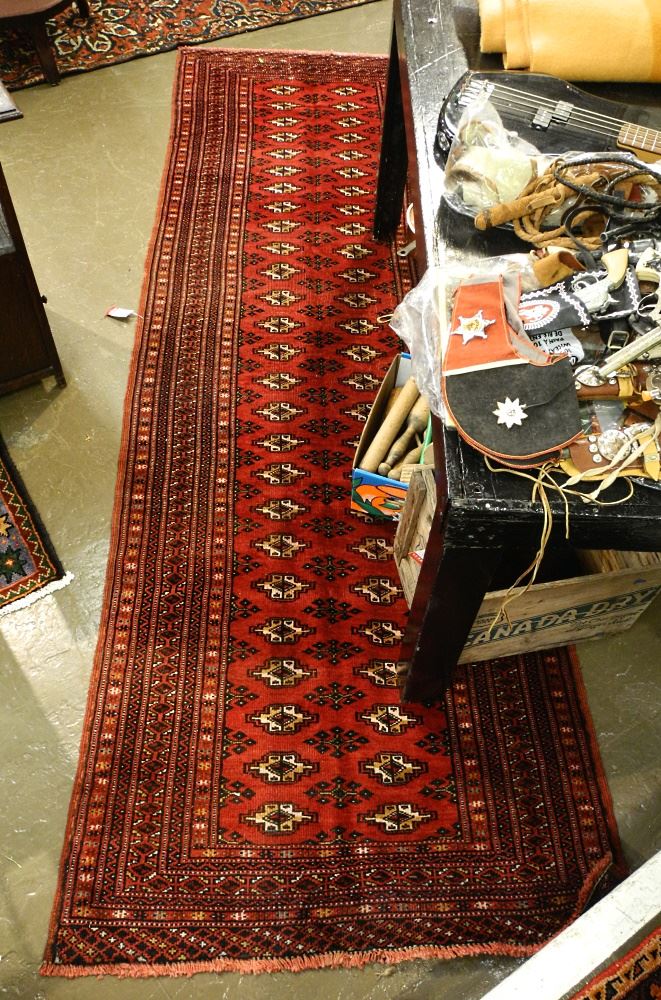 LOT 371 Turkeman Runner, Approximately 9'11" x 3'4". Estimate: $200 - $300 Sold For: $190 Auction Date: Tuesday, November 08 2022 at 6:00 PM