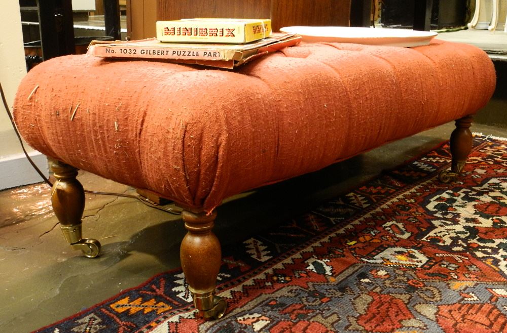 LOT 79 Tufted Ottoman on Casters, 46" Length. As Found. Estimate: $50 - $60 Sold For: $50 Auction Date: Tuesday, November 08 2022 at 6:00 PM