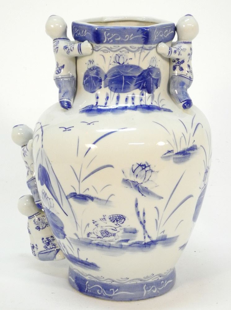 LOT 13 Modern Chinese Blue & White Porcelain "Boys" Vase, 13 1/4" High. Estimate: $50 - $60 Sold For: $15 Auction Date: Tuesday, November 08 2022 at 6:00 PM