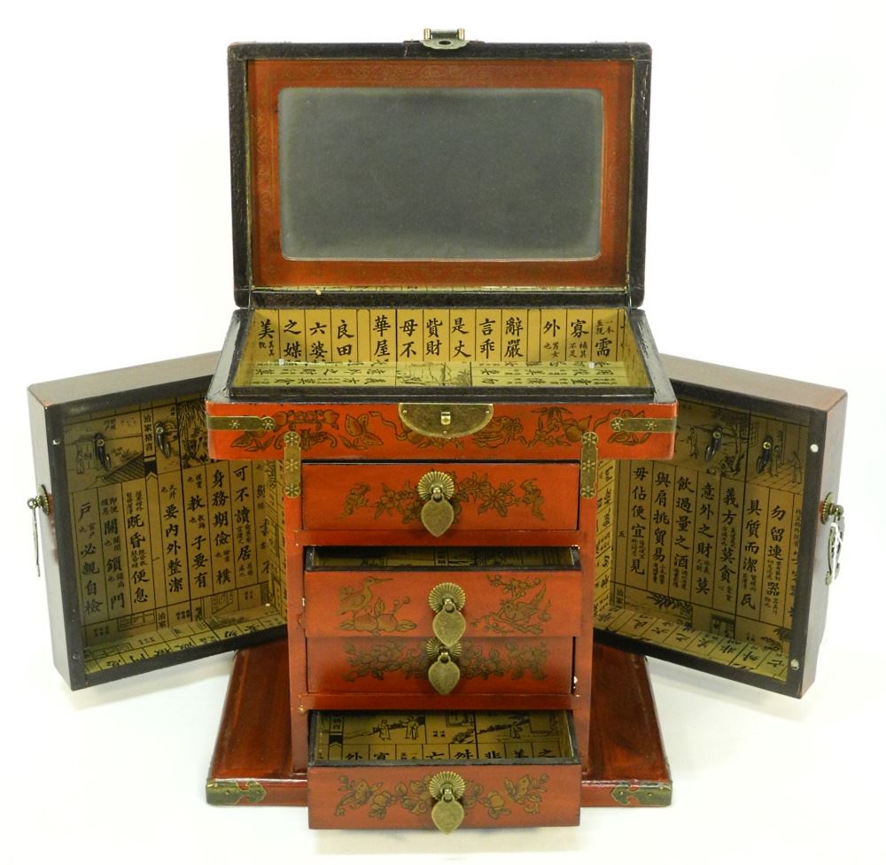 LOT 100 Chinese Lacquer Jewellery Chest, 13 3/8" High. Estimate: $50 - $100 Sold For: $70 Auction Date: Tuesday, November 08 2022 at 6:00 PM