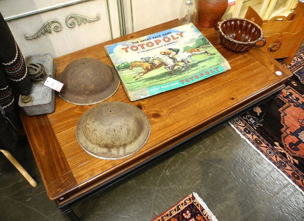 Contemporary Metal Work & Pine Top Low Table, 50" Length.