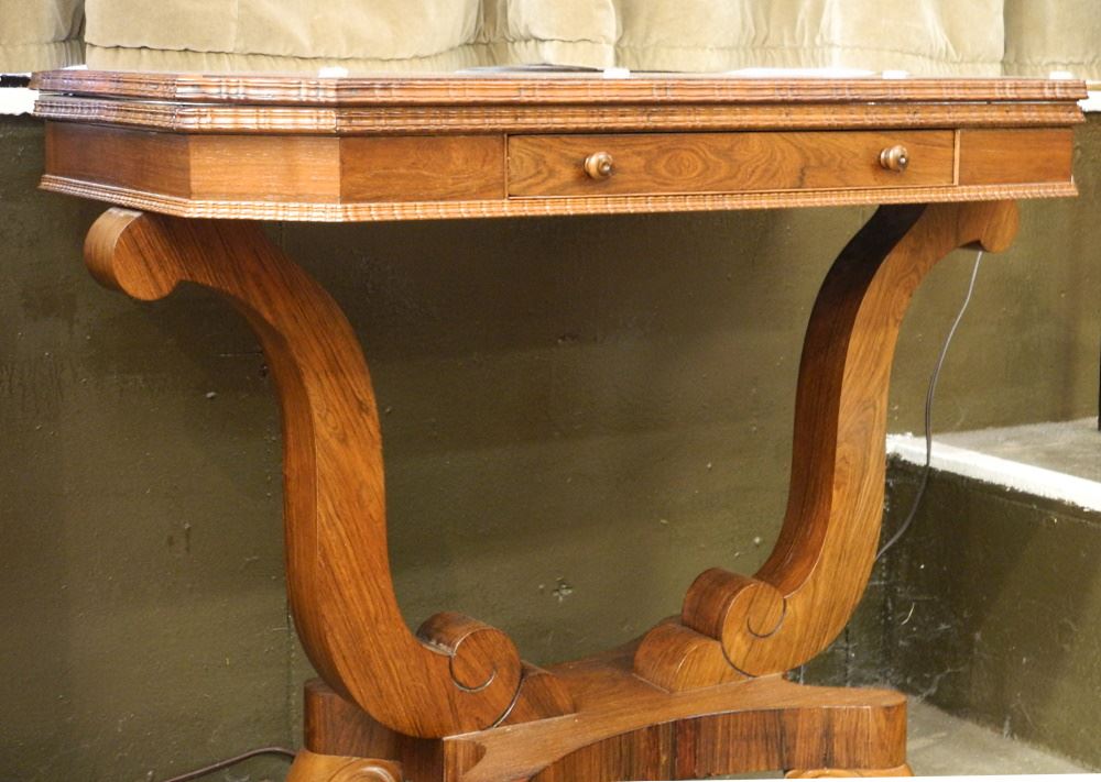 19th Century Rosewood Tea Table, Surface Inverted, 36 1/4" Wide.