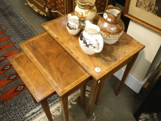 LOT 382 Trio of Banded Mahogany Nesting Tables, Eaton's / College St. Label. Estimate: $50 - $70 Sold For: $90 Auction Date: Tuesday, November 08 2022 at 6:00 PM