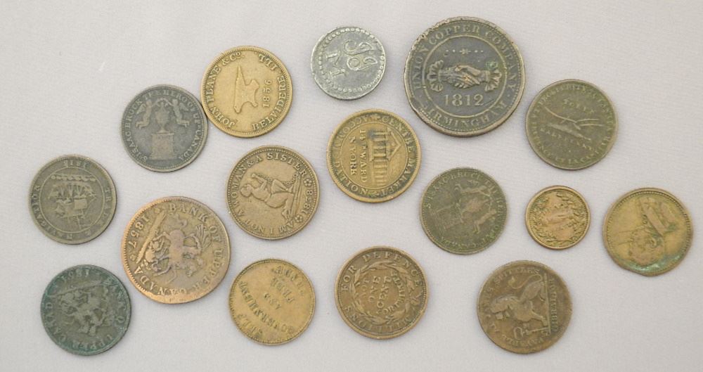 LOT 309 Collection of Copper Tokens, 3 3/4' wide. Estimate: $250 - $450 Sold For: $50 Auction Date: Tuesday, November 08 2022 at 6:00 PM