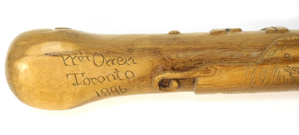 Canadian Folk Art "Animals" Cane Signed Mat Owen Toronto 1896, Approx. 37 1/4" L.
